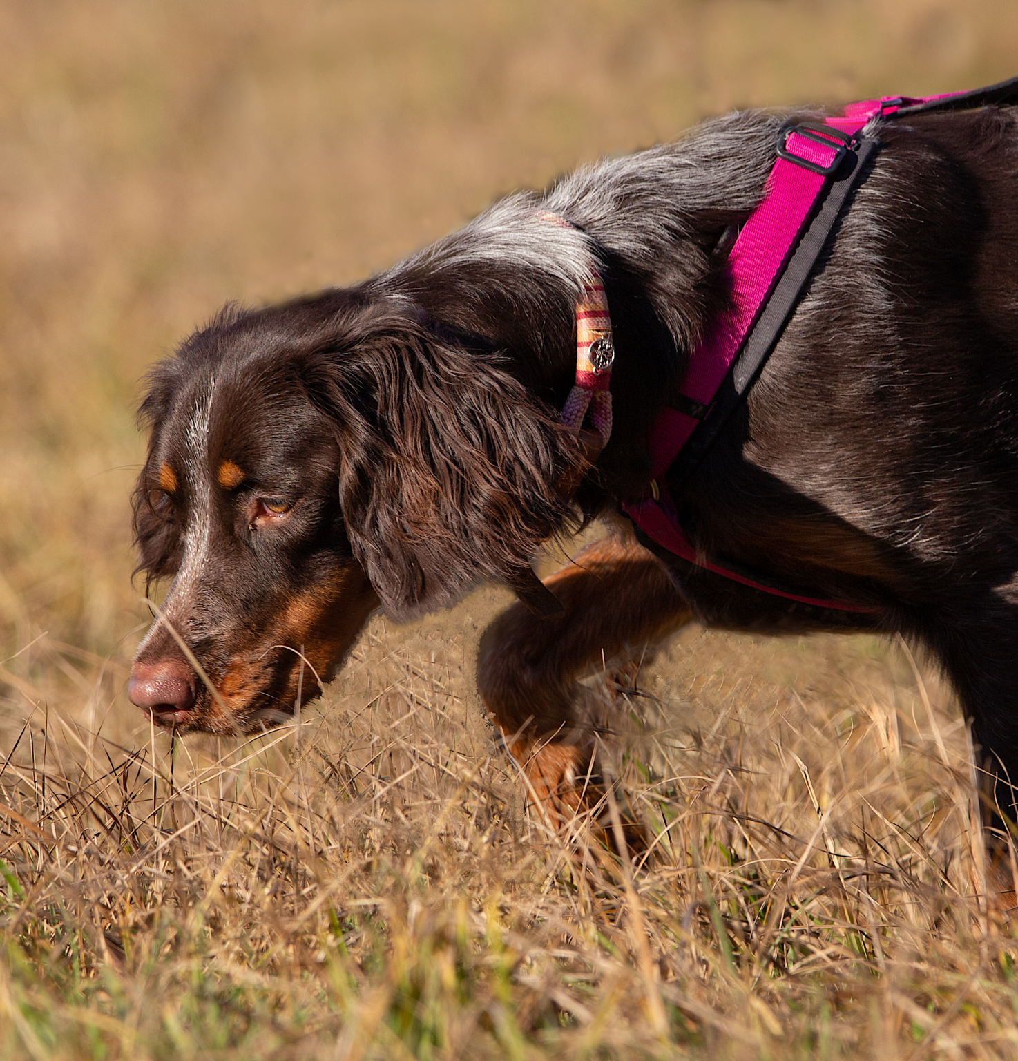 Das Hauptziel des Kurses besteht darin, deinem Hund beizubringen, auf dem Weg zu bleiben und sich in einem angemessenen Radius um dich herum zu bewegen. Dein Hund soll lernen, Wild anzuzeigen, anstatt ihm nachzujagen. Falls er dennoch einmal losläuft, üben wir, ihn abzurufen oder zu stoppen. Dazu muss dein Hund lernen, seine Impulse besser zu kontrollieren. Für weitere Informationen zum Jagdkontrolltraining, schau auf meiner Homepage vorbei.
